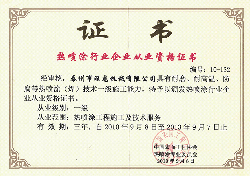 熱噴涂行業(yè)從業(yè)證書(shū)